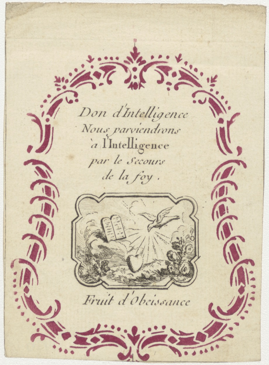 Spreuk met afbeelding H. Geest enz. (Frans)