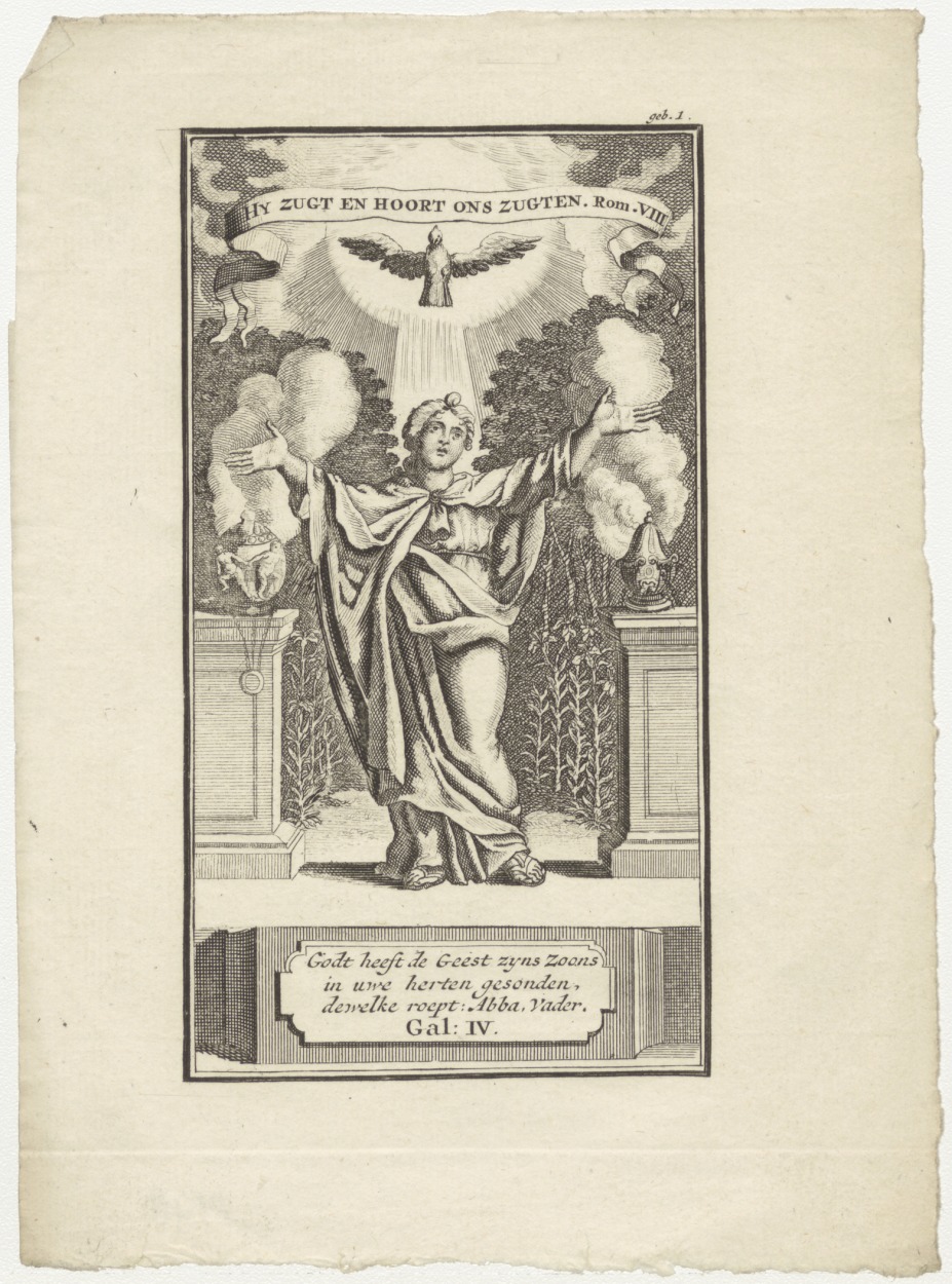 Hij zucht en hoort ons zugten... H. Geest met mens titelblad(?)