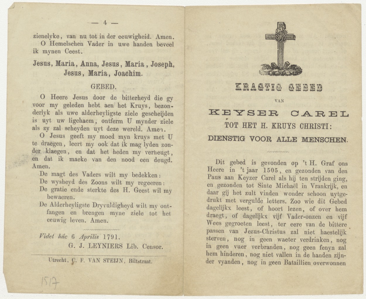 Krachtig gebed van keizer karel tot het H. Hruis Christi, kz. zie titel
