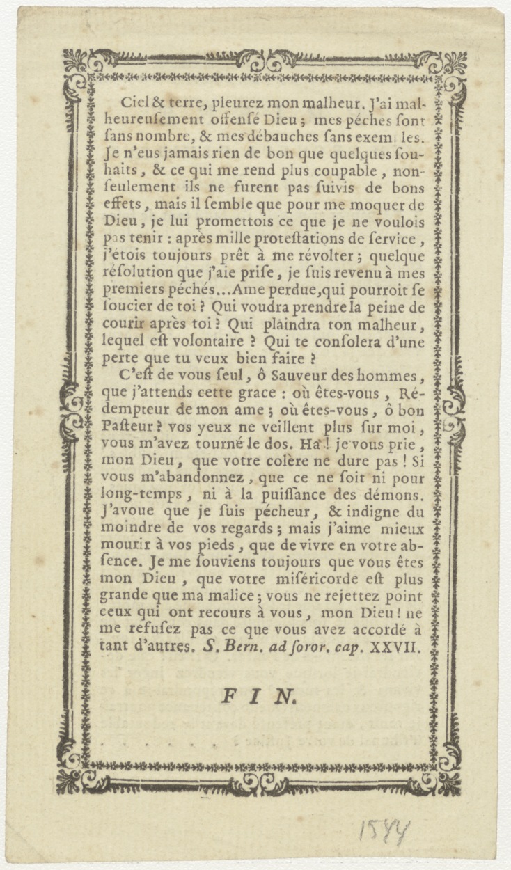 Gebed voor de H. Bernard (Frans), kz. zie titel