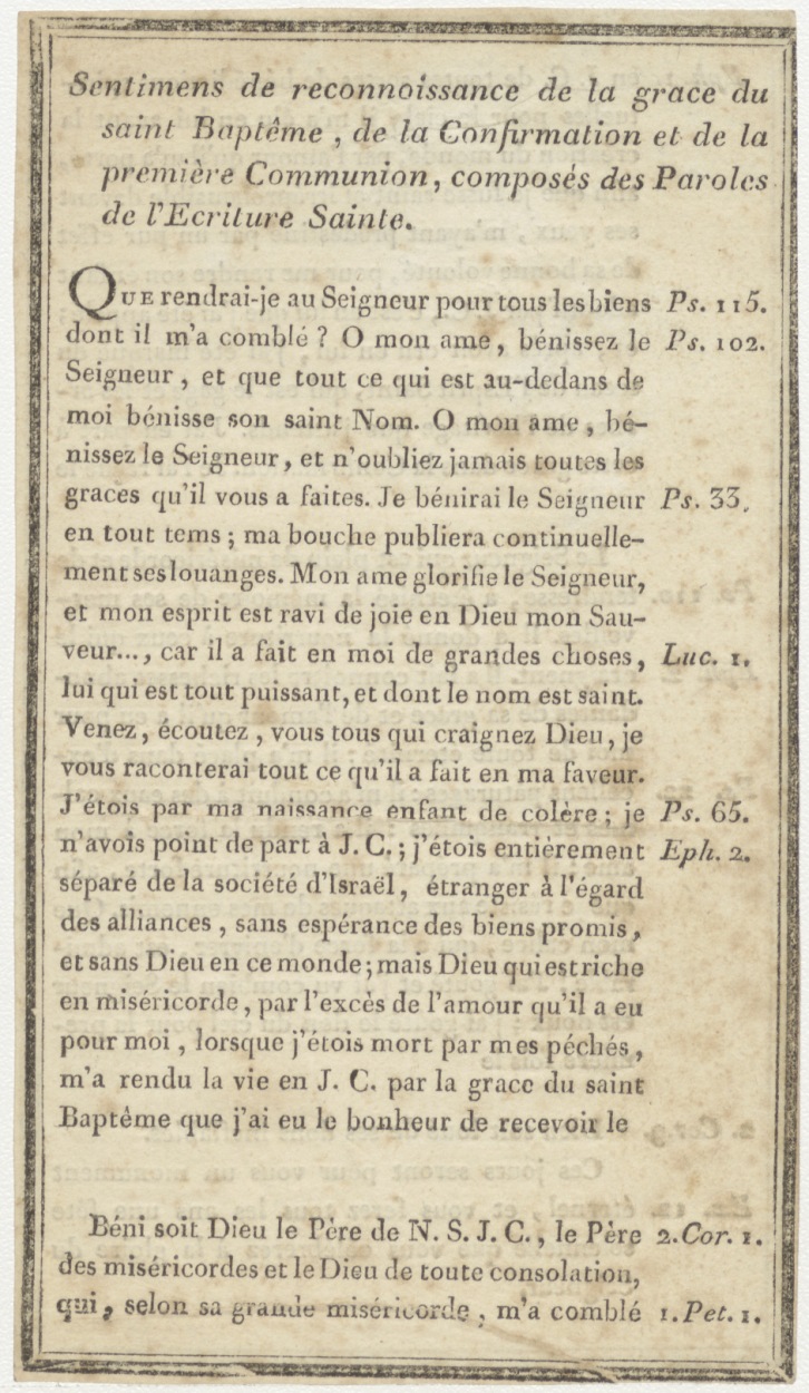 Tekst over o.a. de doop (Frans), kz. zie titel