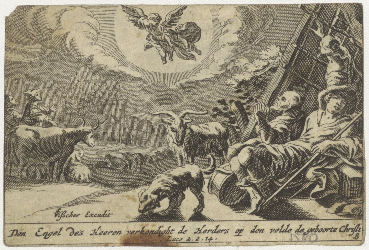 Visitatie (ingekleurd), kz. engel verkondigt boodschap aan de herders