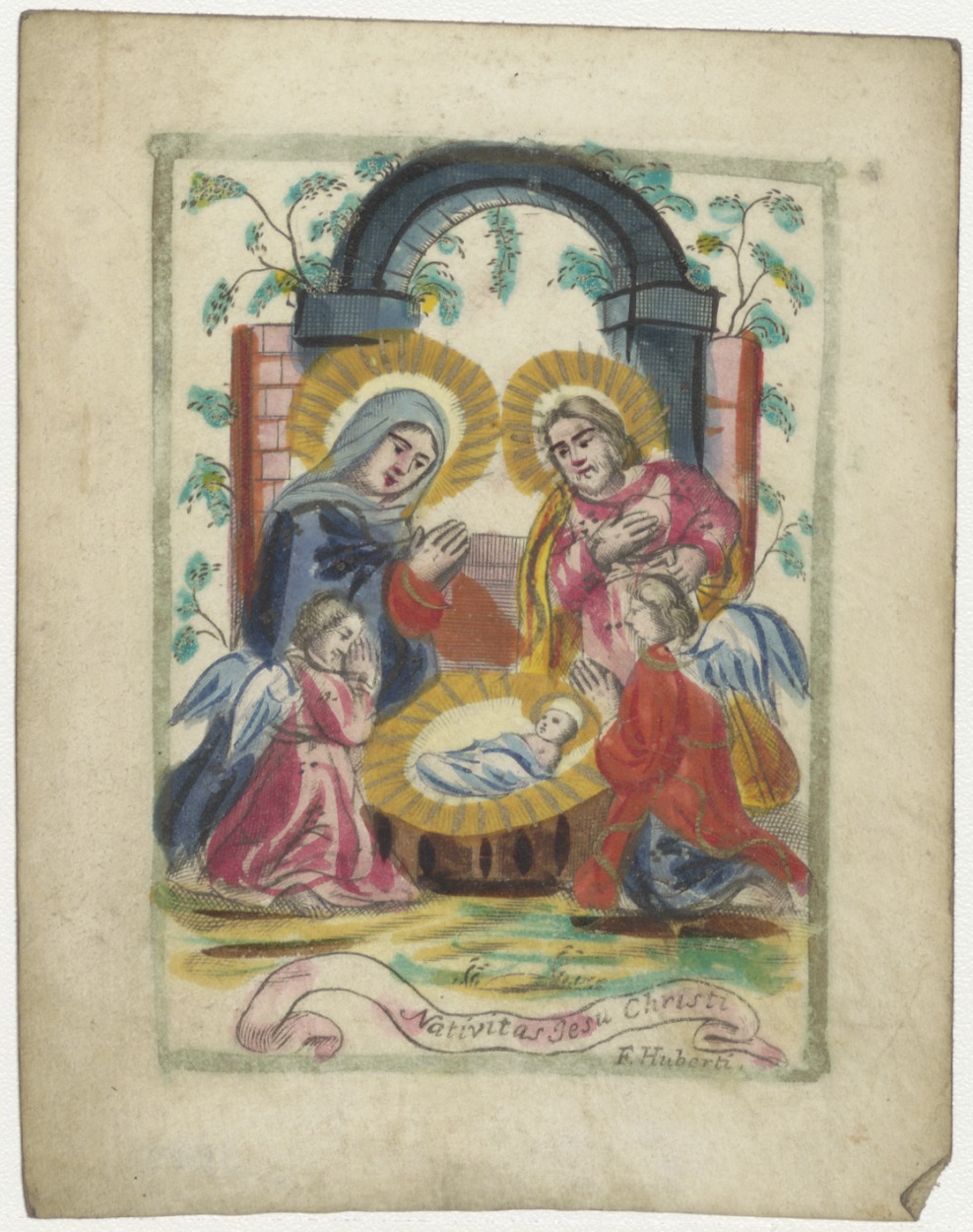 Geboorte van Christus, ingekleurd, kz. bezit van de Broek