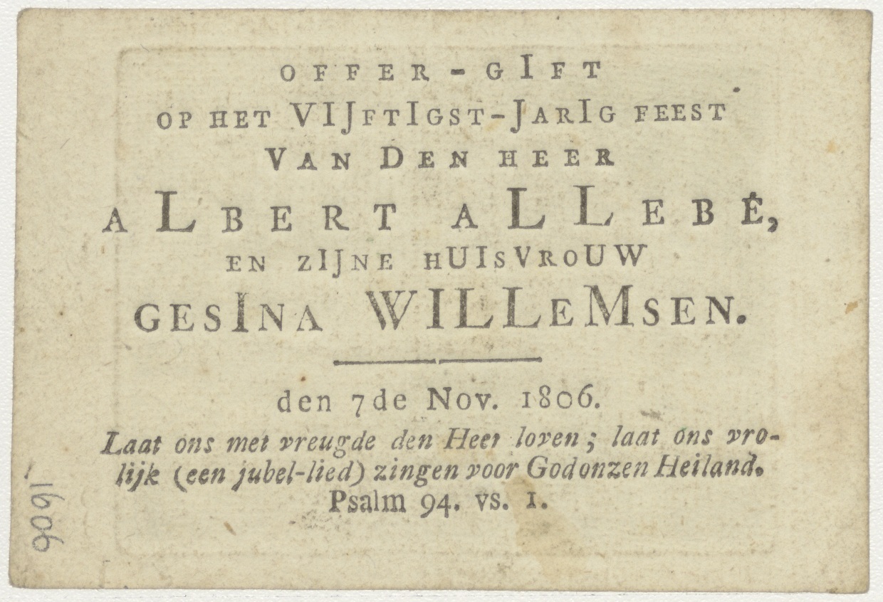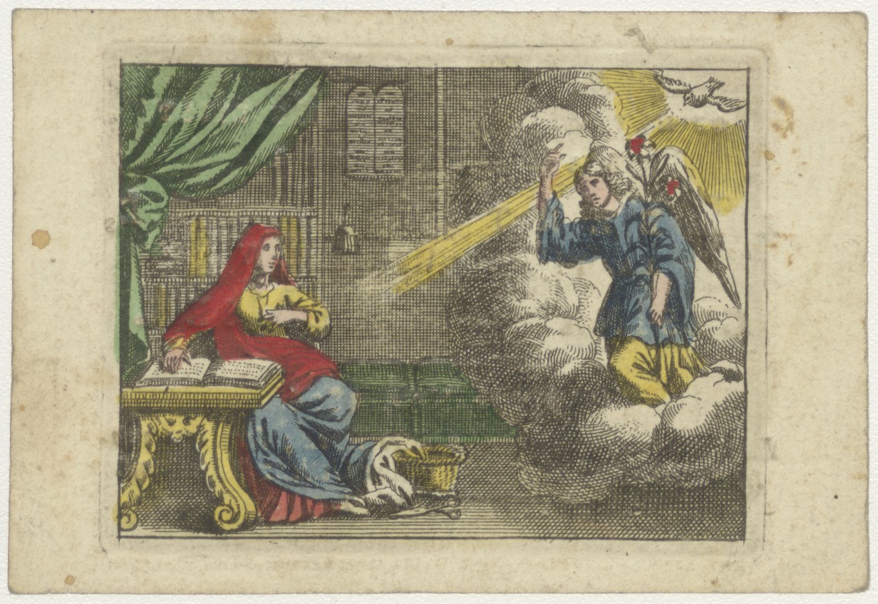 Annunciatie, ingekleurd, kz. offergift 50-jarig feest Allebé-Willemsen; 1806