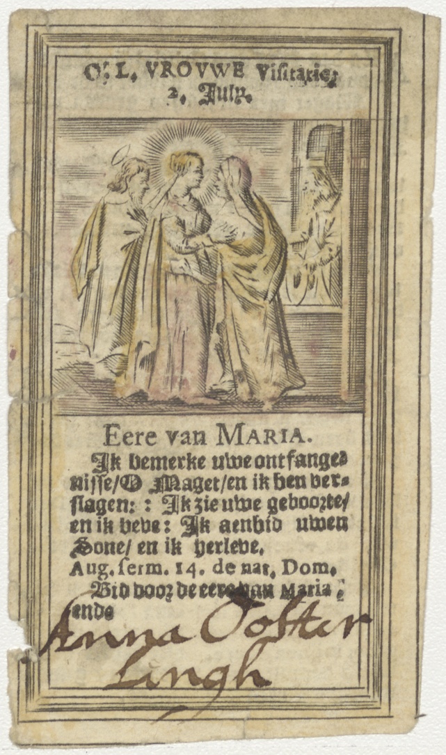 Visitatie, ingekleurd, met "Anna Oosterlingh", kz. beschrijving