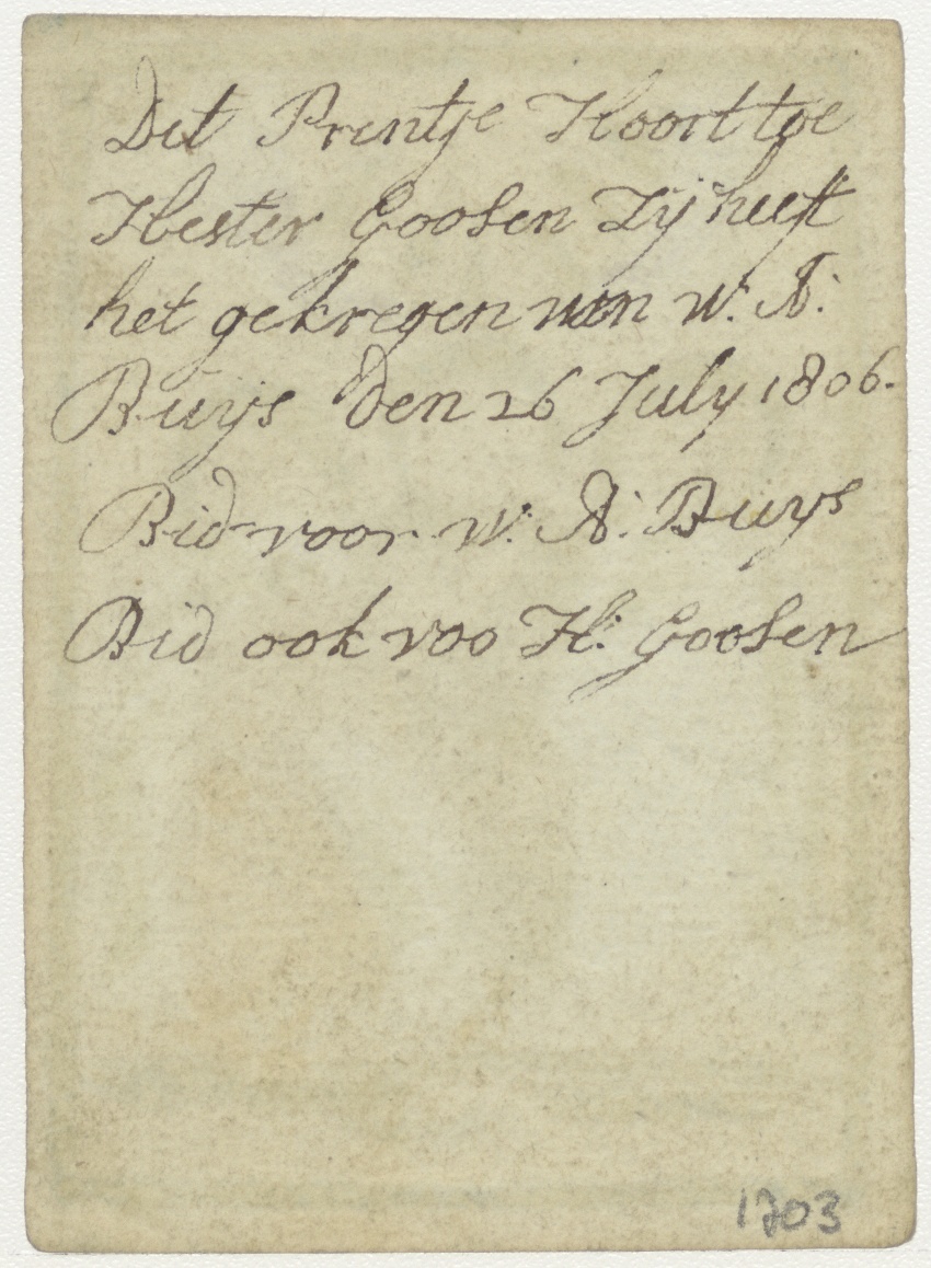 H. Driekoningen, ingekleurd, kz. beloning Goosen; 1806 van pastoor Buys