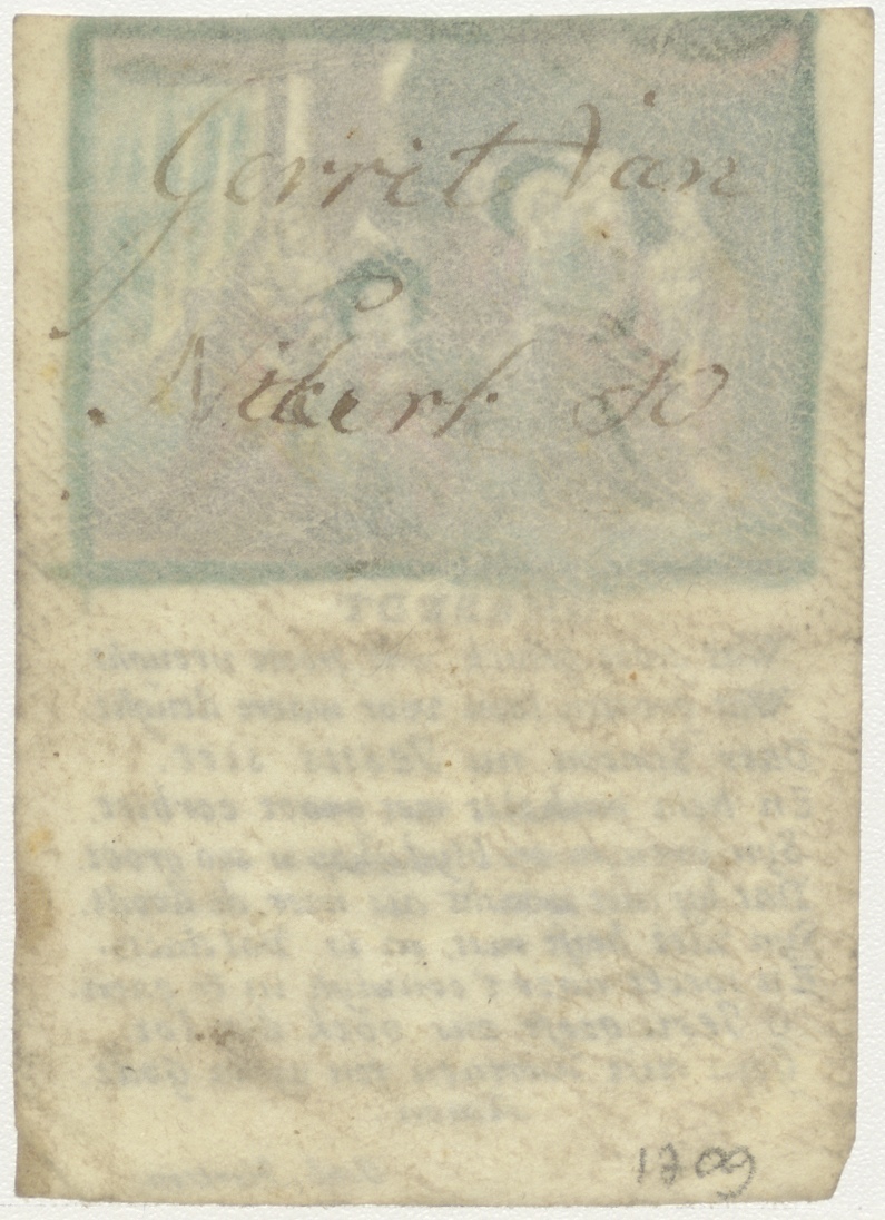 Christuskind en H. Simeon in gebed, ingekleurd, kz. ?