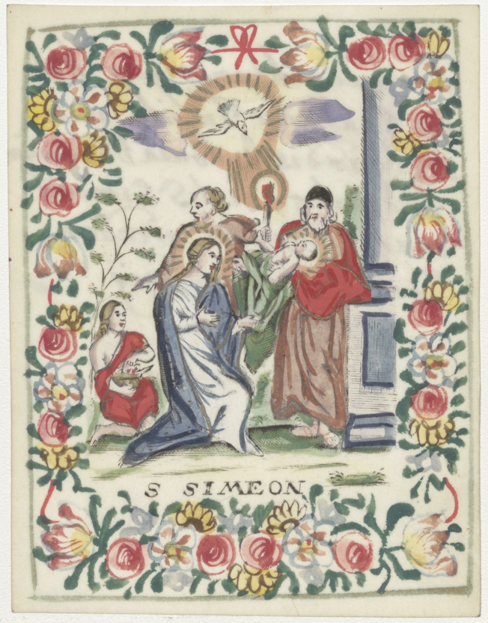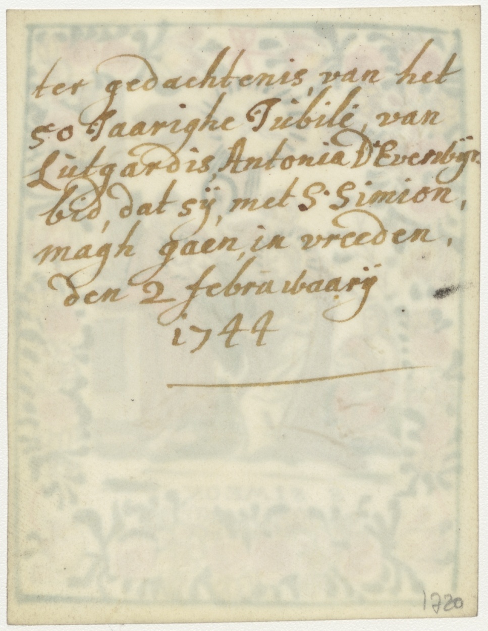H. Simeon met Christuskind in de tempel, ingekleurd, kz. 50 jarig jubilé d'Everbijn(?);1744