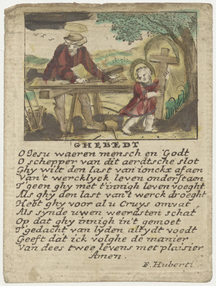Jozef en Christus; timmermanswerkplaats; met gebed