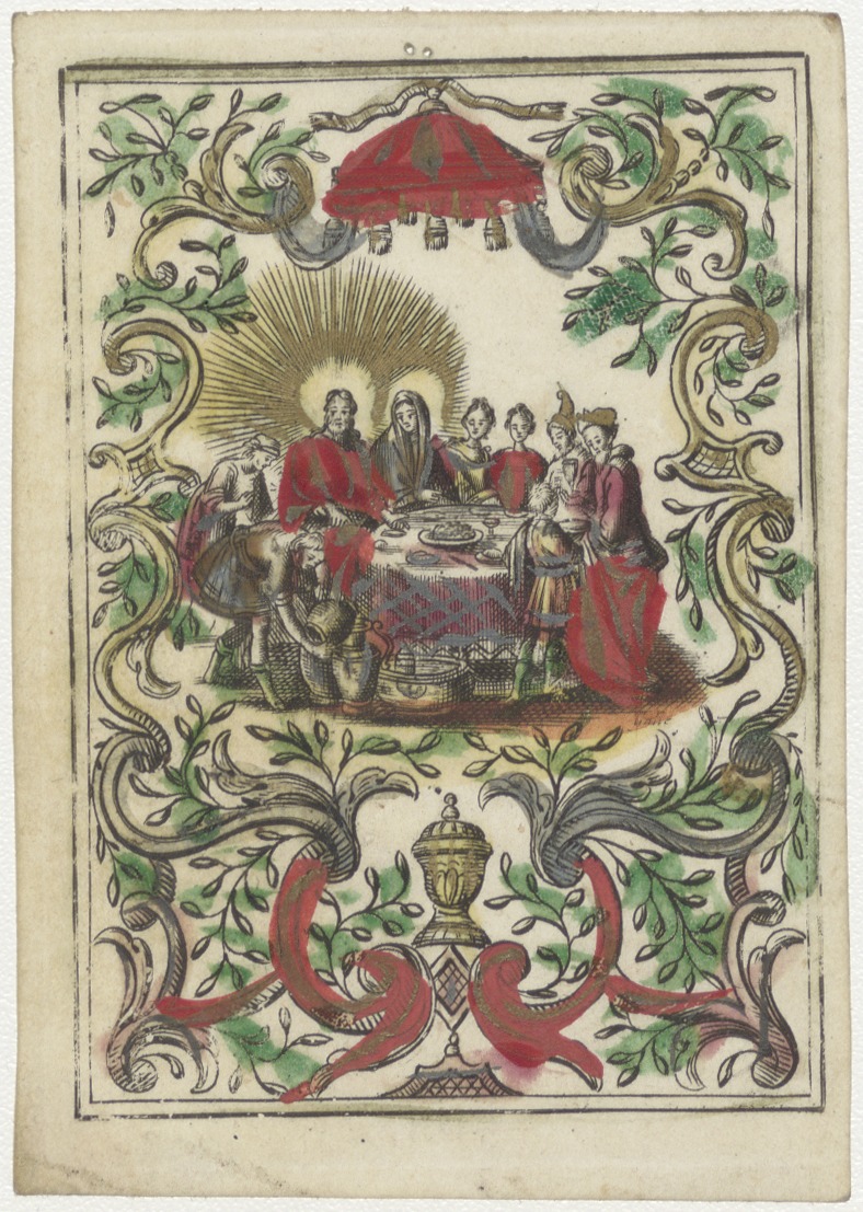 Wonder van Christus, bruiloft te Canaän, ingekleurd