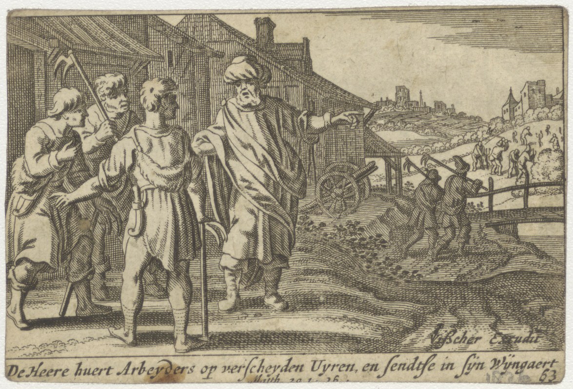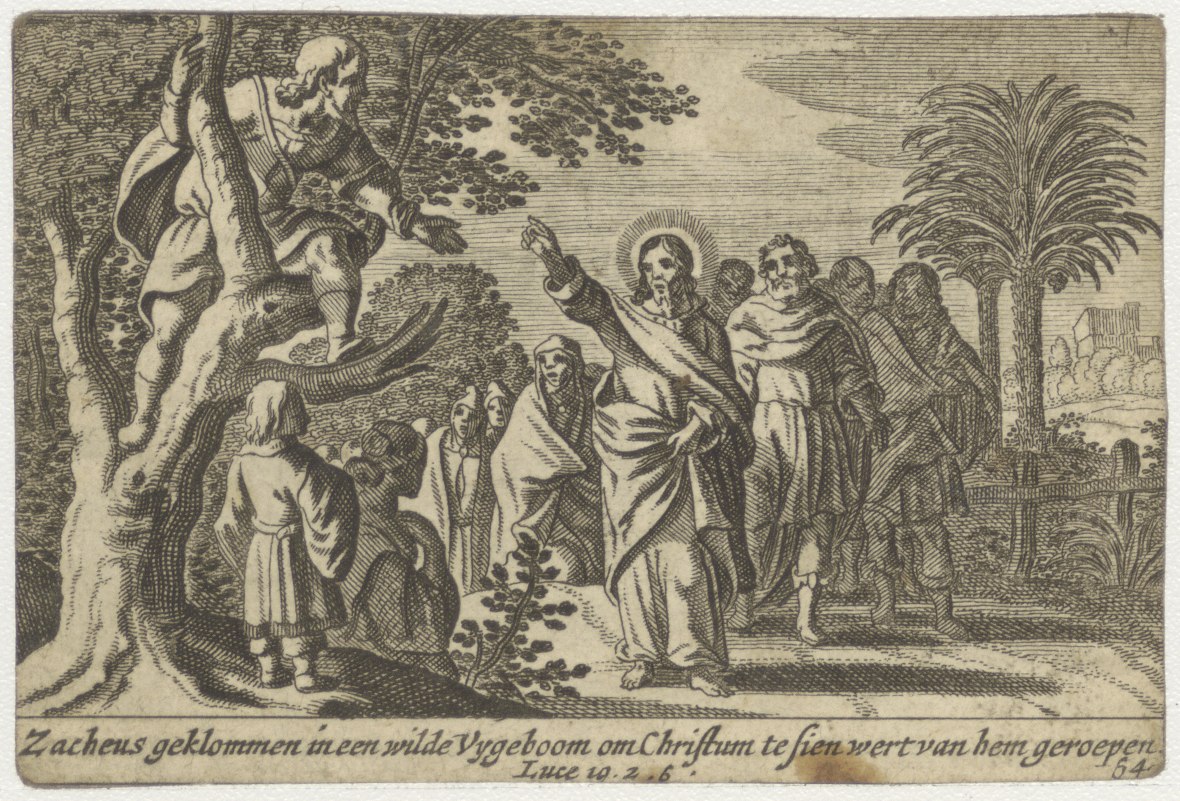 Zacheus in een vijgeboom als Christus hem roept (Luc.19:26), kz. heer stuurt arbeiders naar de wijngaart (Math.29:1-26)