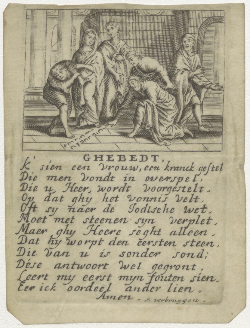 Christus en de overspelige vrouw met gebed