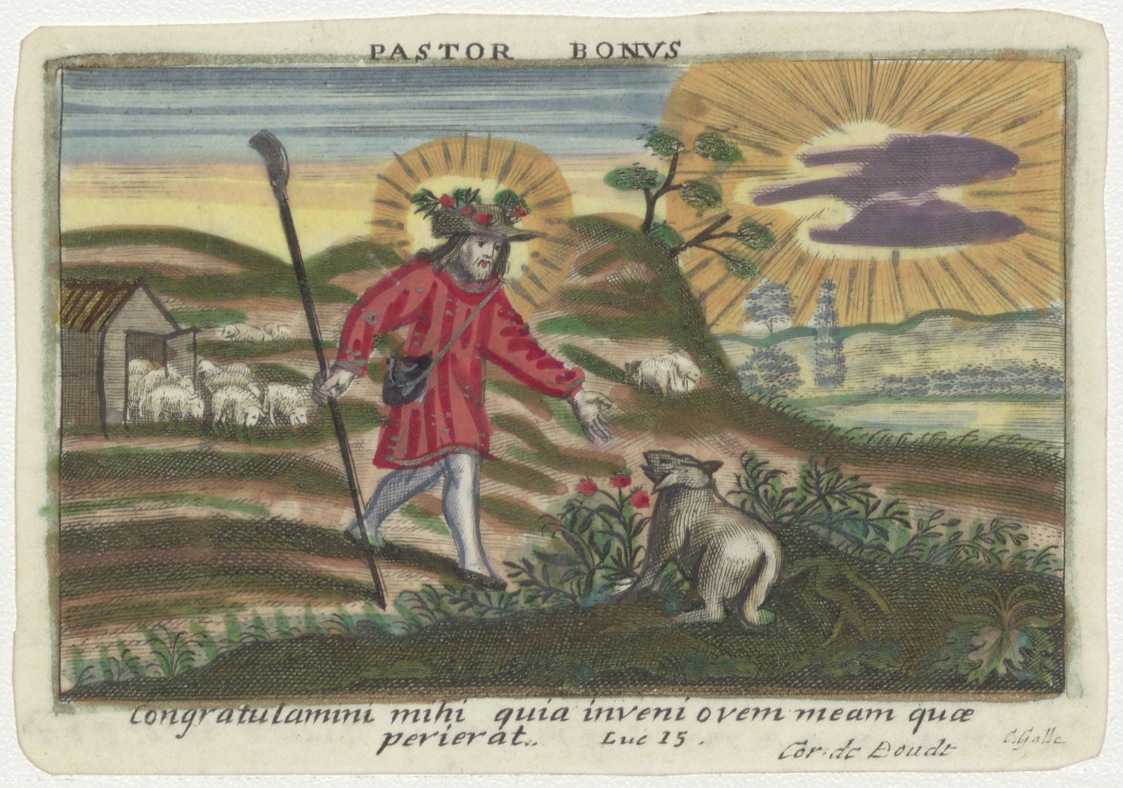Christus als pastor bonus (Luc.15), ingekleurd, kz. beloning van pastoor...1761