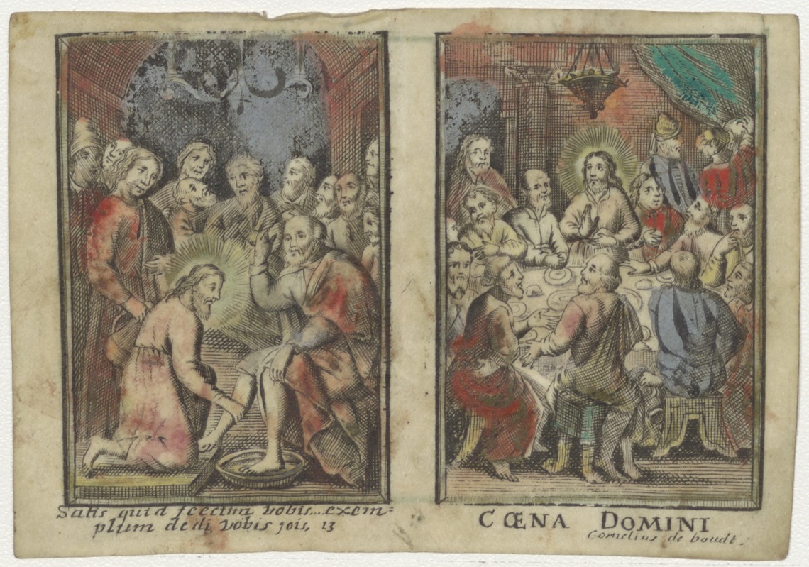 Laatste avondmaal;Christus wast de voeten van zijn apostelen, ingekleurd
