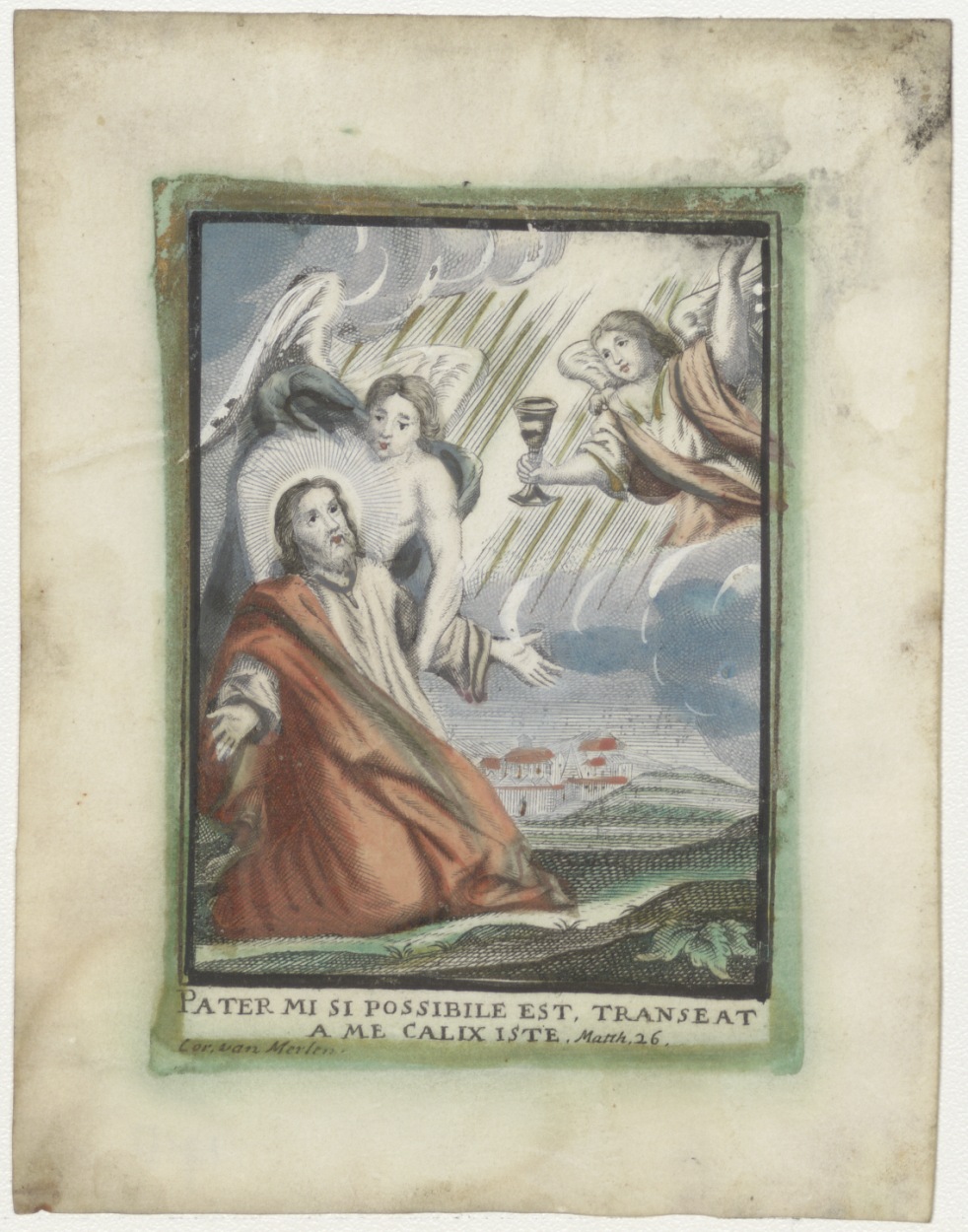 Christus ontvangt het H. Sacrament in de hof van olijven, ingekleurd