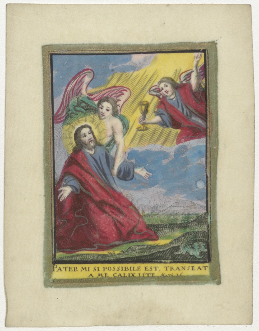Christus ontvangt het H. Sacrament in de hof van olijven, ingekleurd