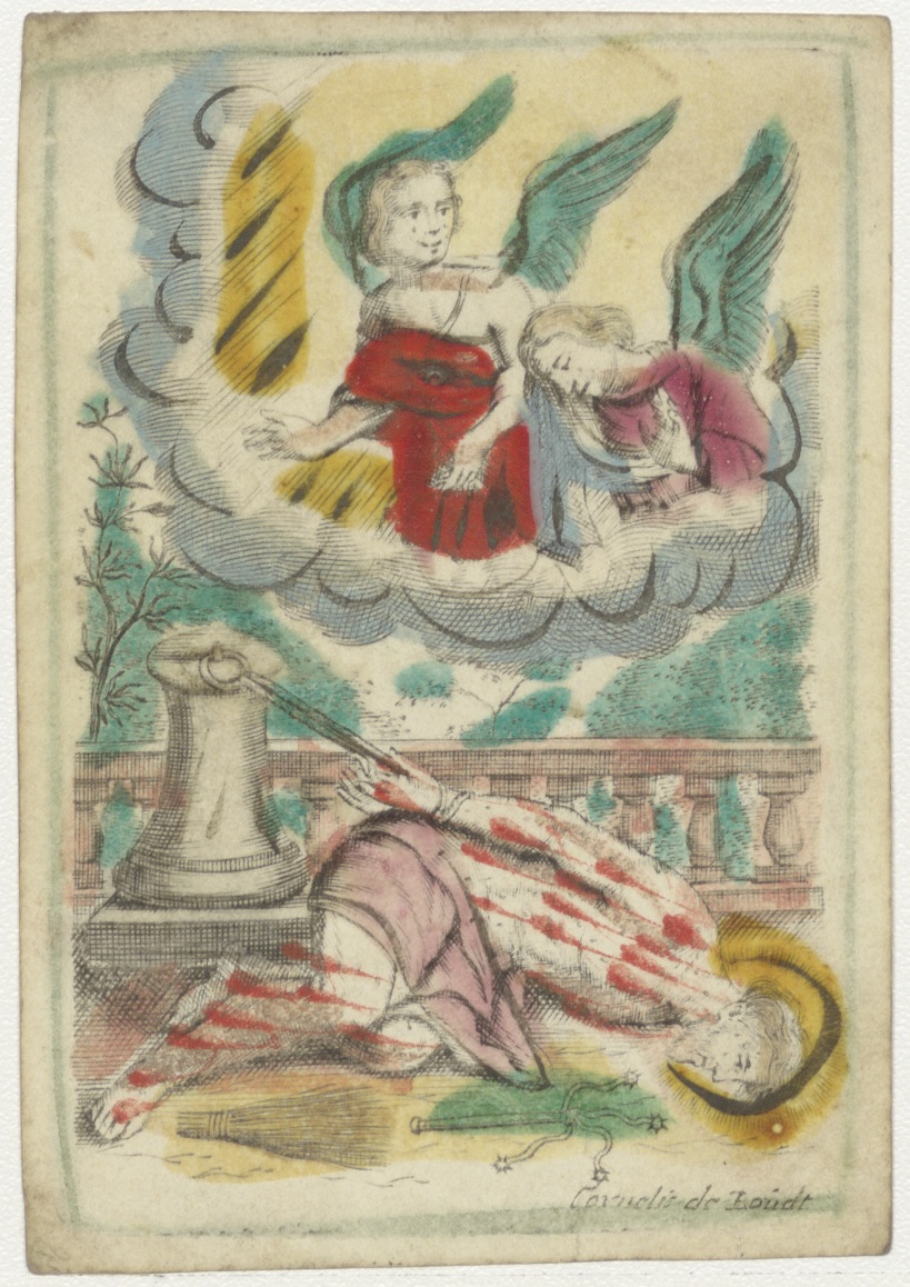 Gemartelde Christus met twee engelen, ingekleurd