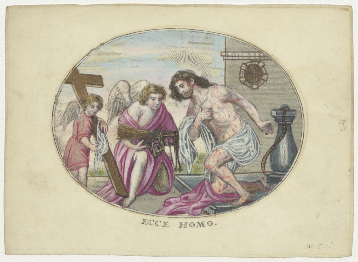 Gemartelede Christus met twee engelen; Ecce Homo, ingekleurd