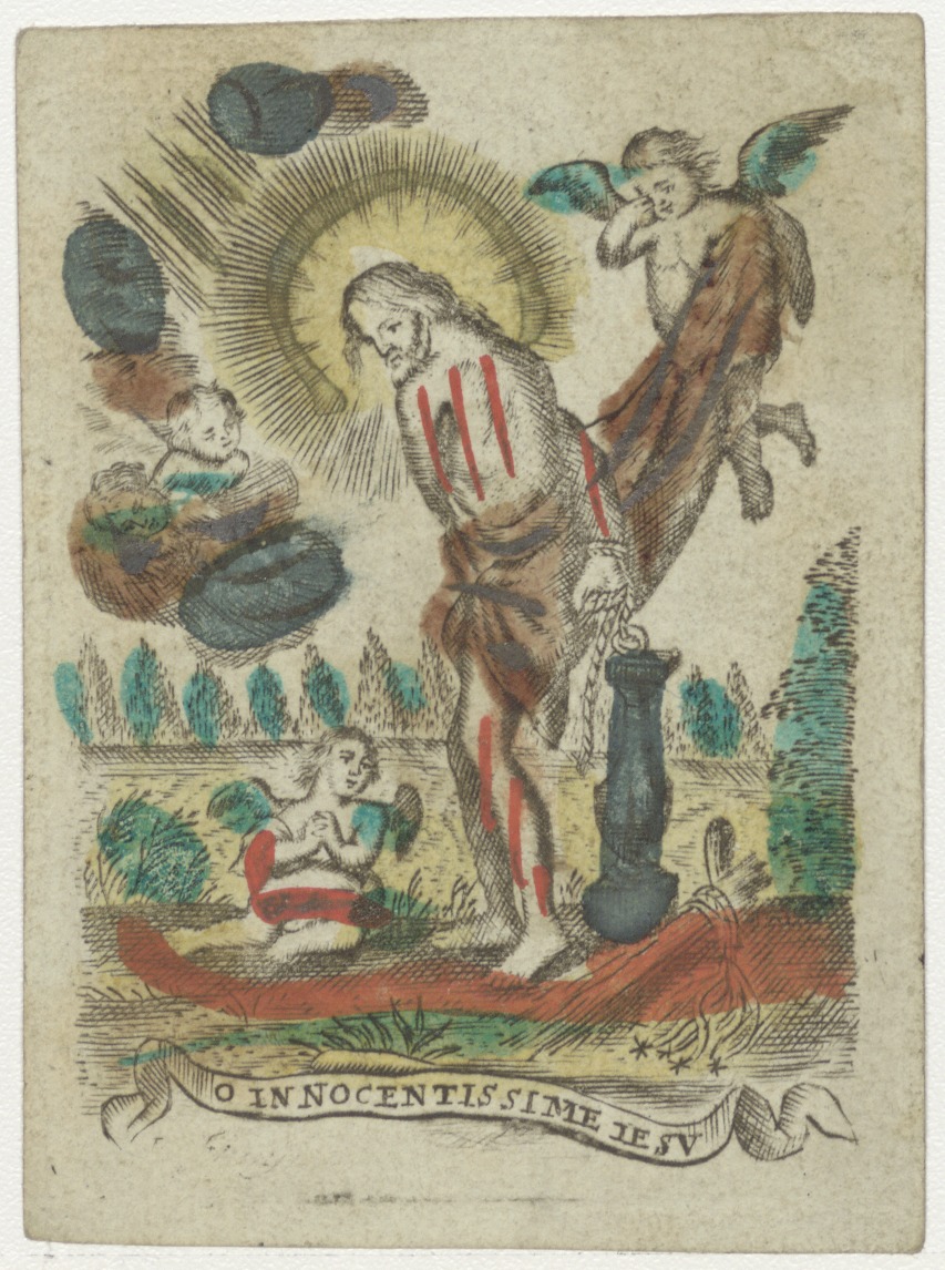 Gemartelde Christus met engelen, ingekleurd