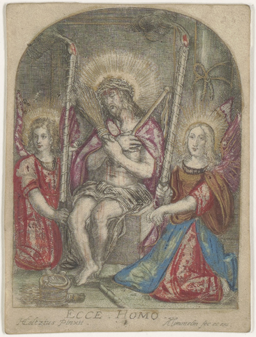 Christus Ecce Homo met twee engelen, ingekleurd, kz. Roomanna