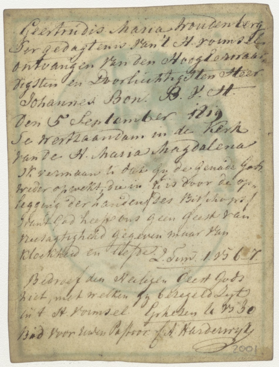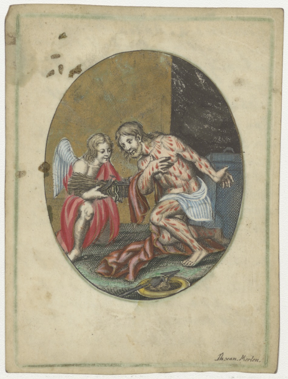 Lijdende Christus met engel, ingekleurd, kz. H. Vormsel Geertrudis Maria Woudenberg (1819) door Johannes Bon en pastoor Harderwijk