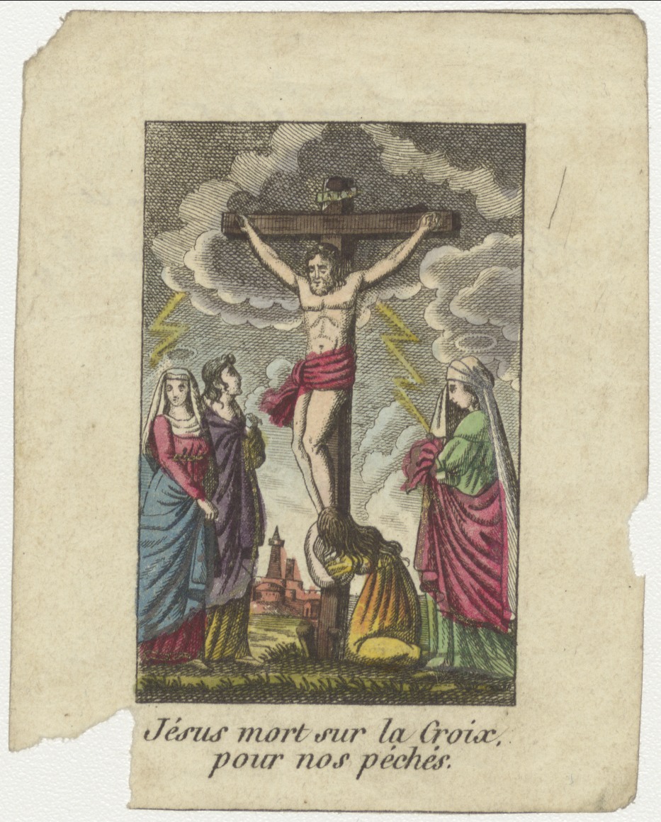Gekruisigde Christus (Frans), ingekleurd, kz. inwijding mgr. Heykamp 1875