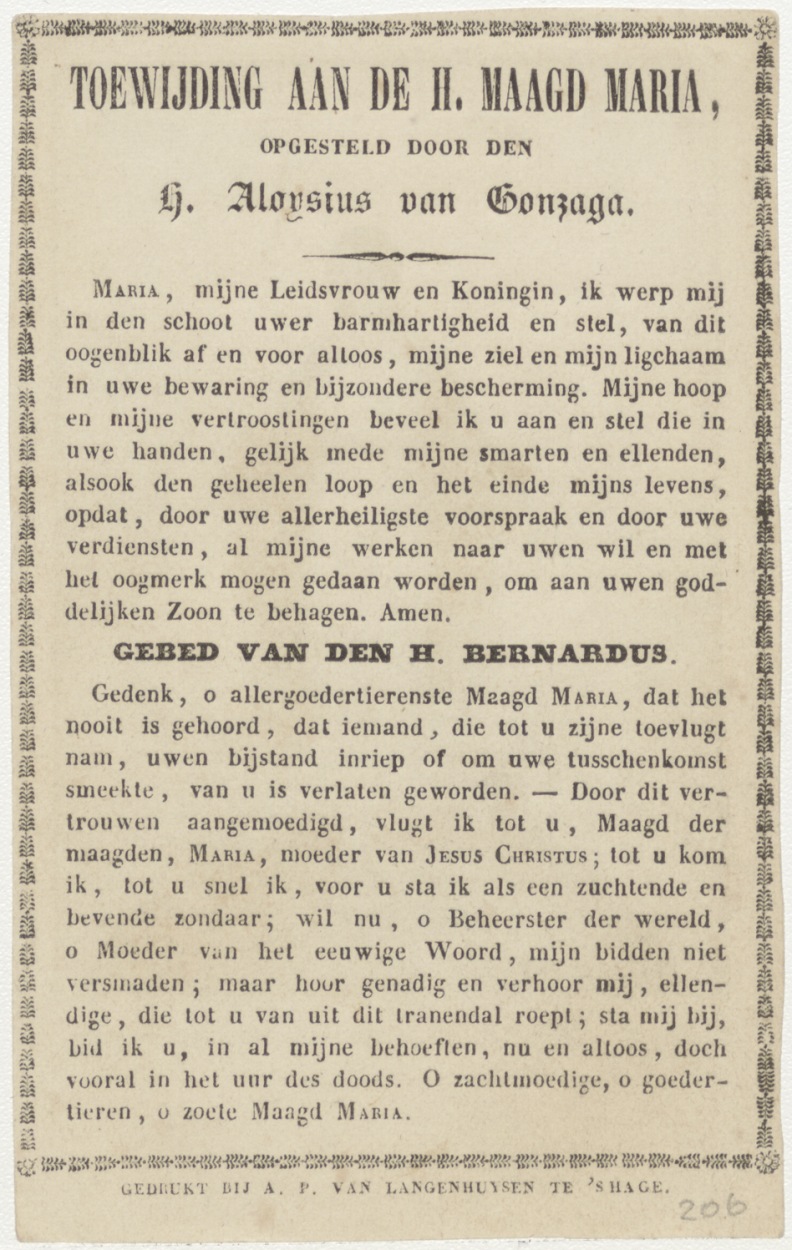 Maria, ontvangen zonder zonden, kz. Toewijding aan Maria door H. Aloysius van Gonzaga, gebed van H. Bernardus