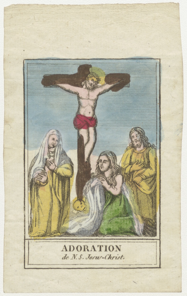Adoratie van Christus, gekruisigde Christus met Maria, Maria Magdalena en Joannes (Frans)
