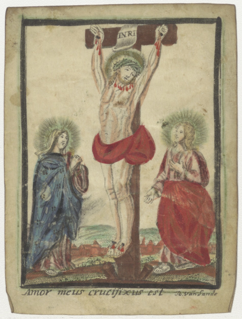 Gekruisigde Christus met Johannes en Maria, ingekleurd