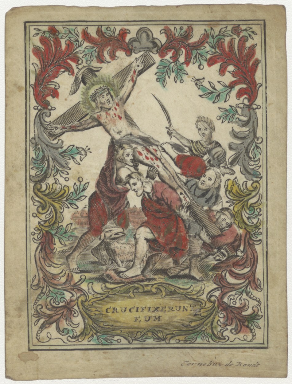 Kruisoprichting van Christus, ingekleurd