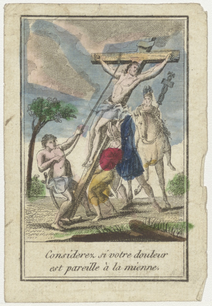 Kruisoprichting van Christus(Frans), ingekleurd