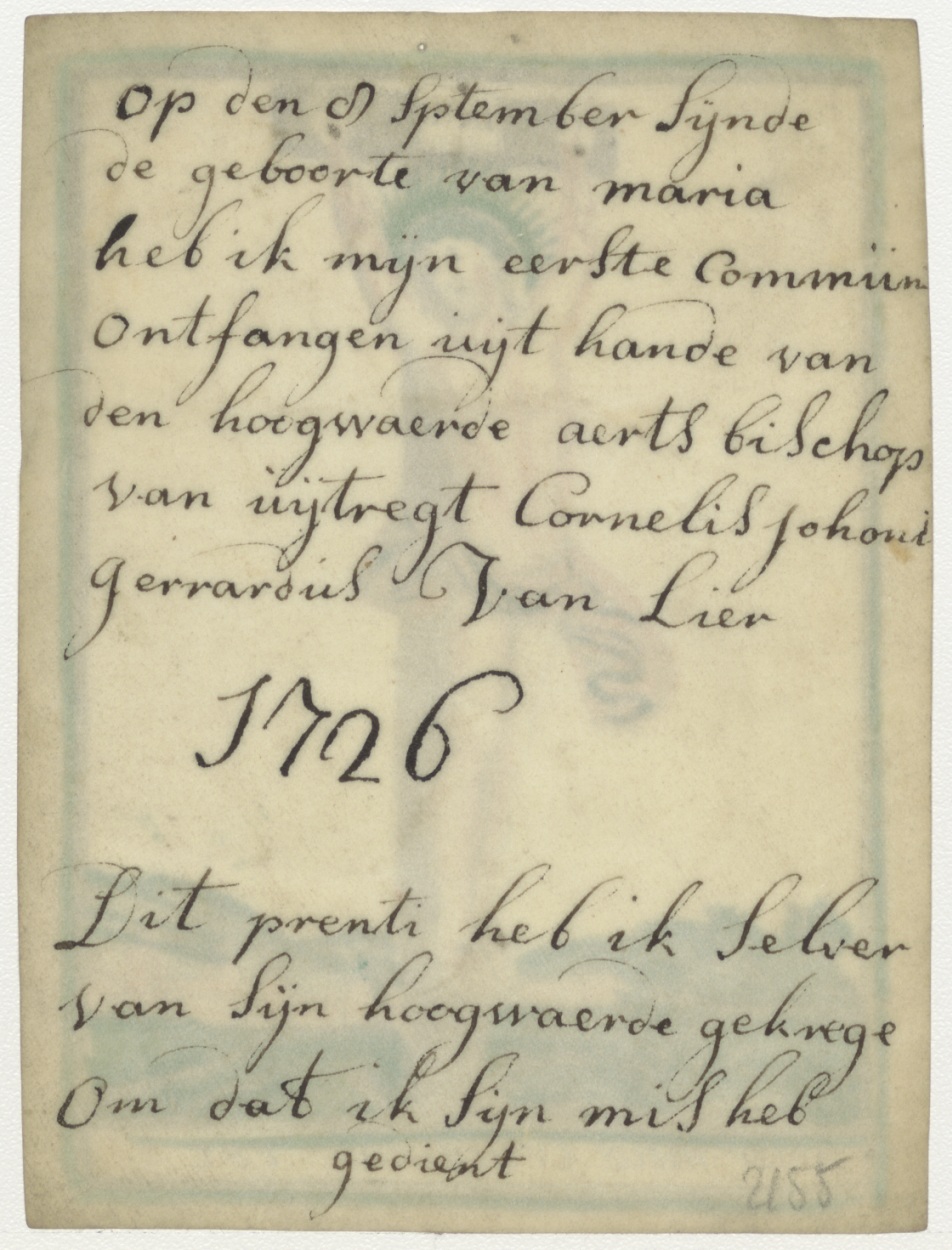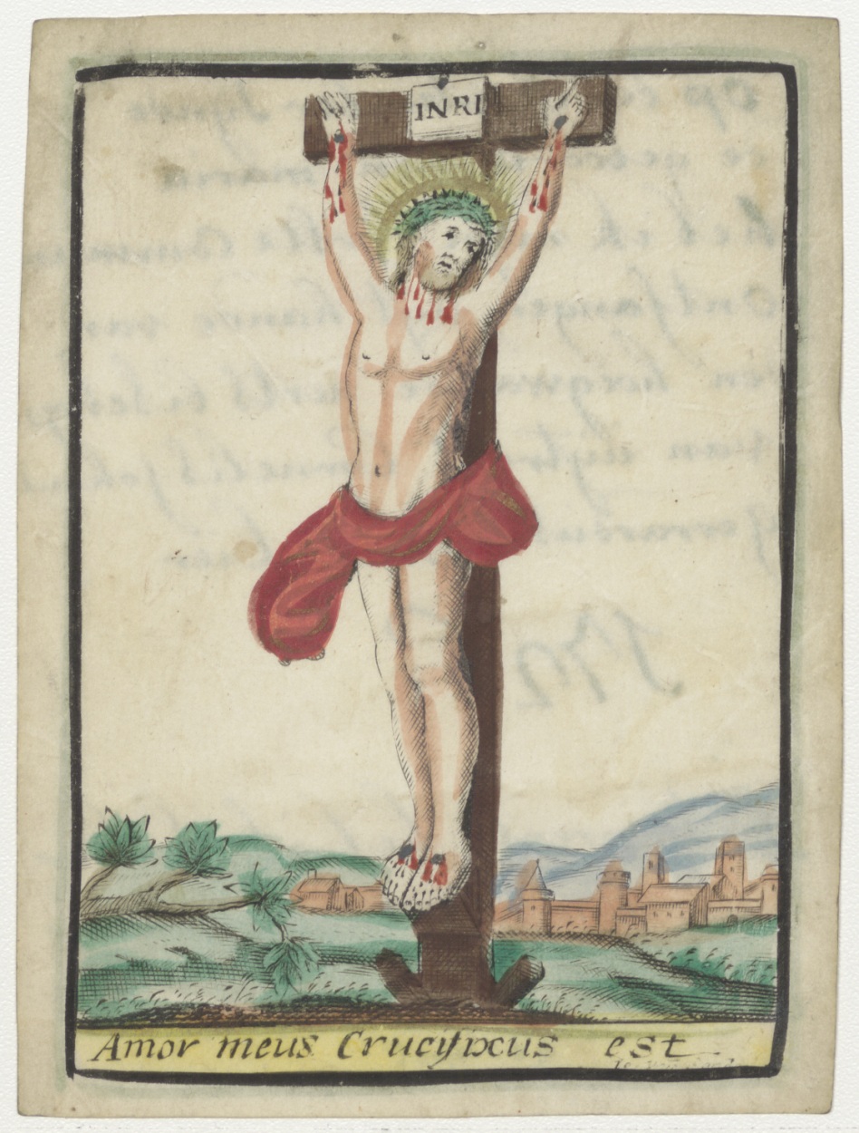 Gekruisigde Christus, kz. H. Communie uit hande van Cornelis van Lier aartsbisschop van Utrecht;1726
