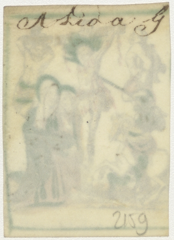 Gekruisigde Christus wordt met lans in de zij gestoken, ingekleurd, kz. Alida