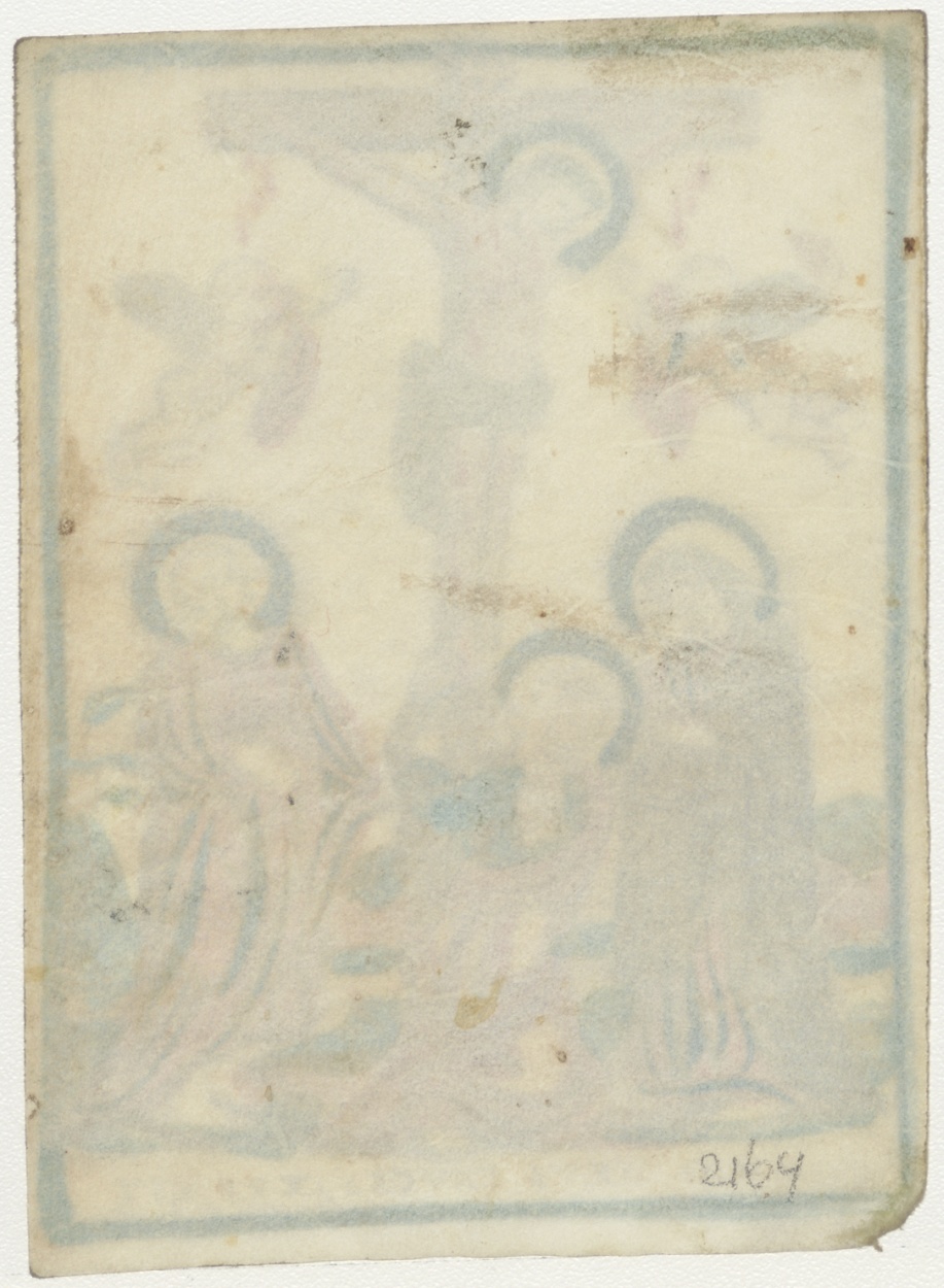 Gekruisigde Christus met Maria, Johannes en Maria Magdalena, ingekleurd