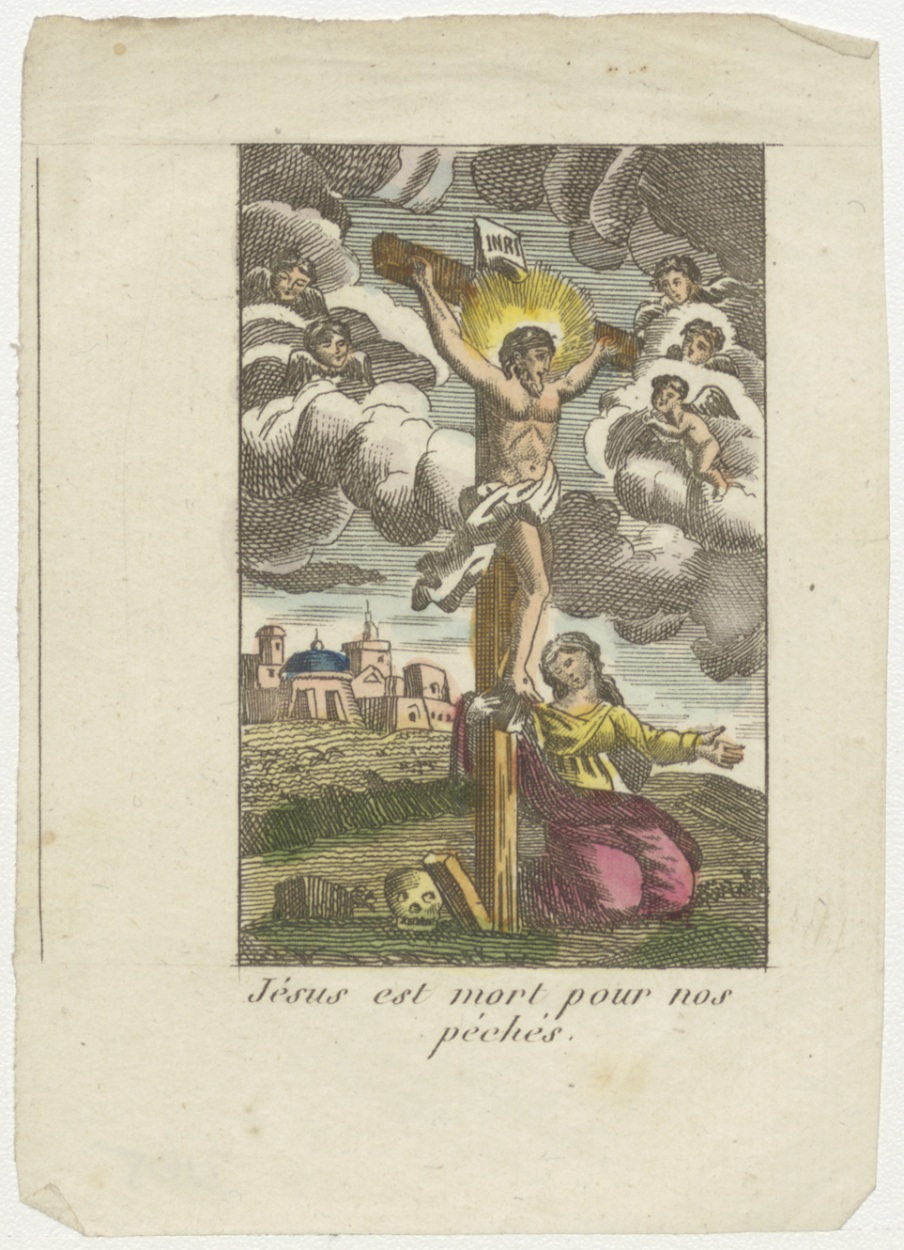 Gekruisigde Christus met Maria Magdalena (Frans), ingekleurd