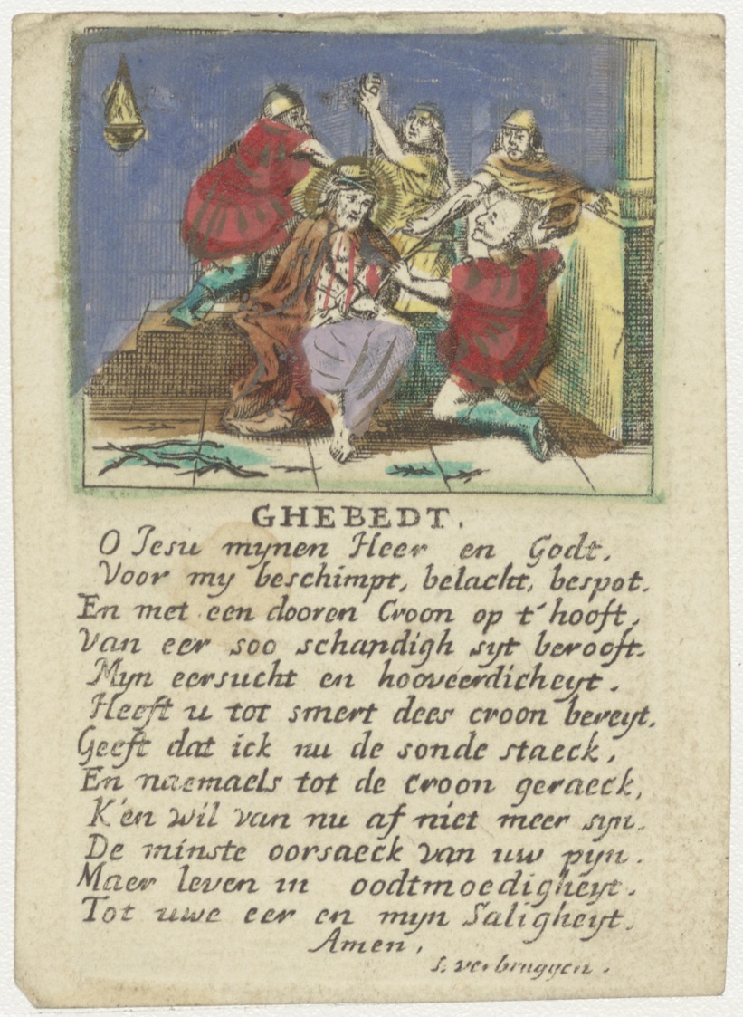 Marteling van Christus met gebed, ingekleurd