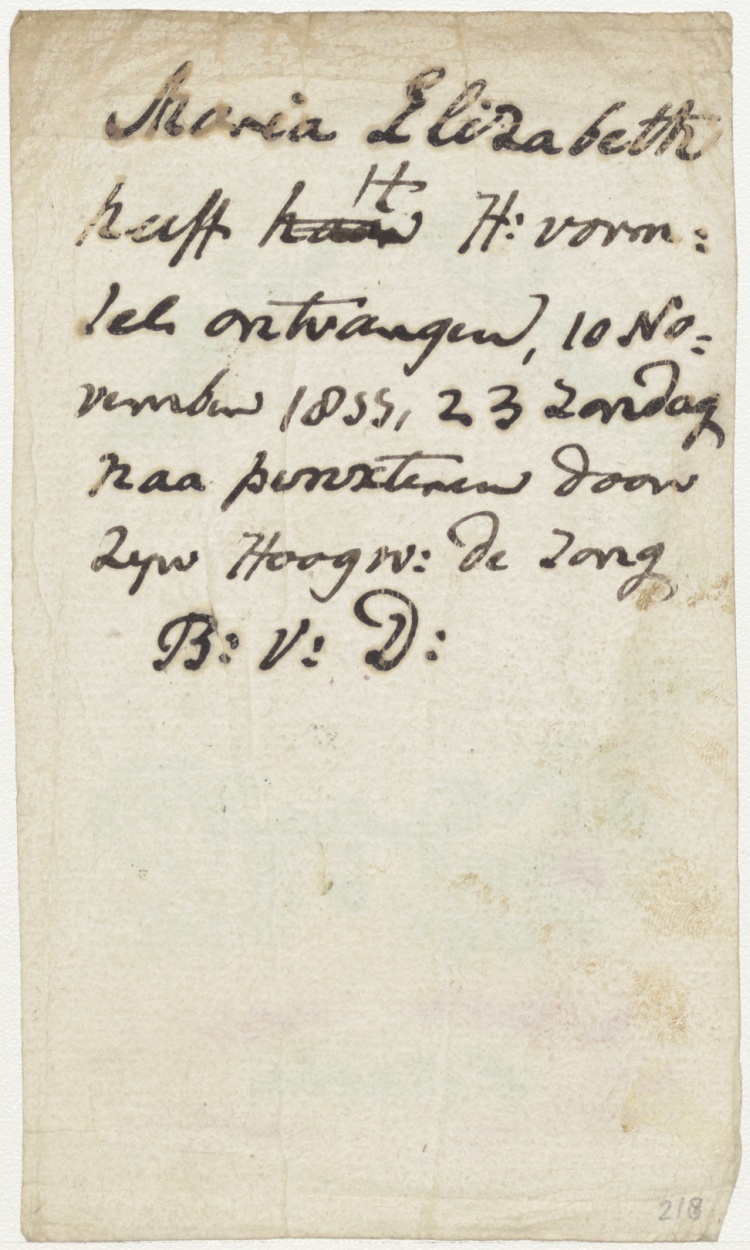 Maria, ingekleurd, kz. Vormsel Maria Elisabeth (1855) door De Jong