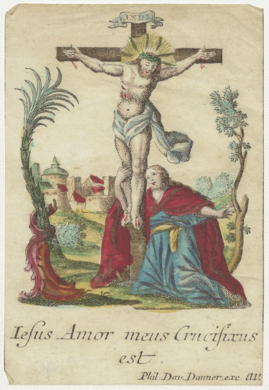 Gekruisigde Christus met Maria Magdalena, ingekleurd