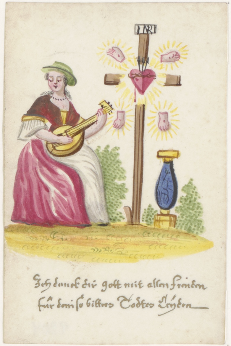 Vrouw met kruis met stigmata van Christus (Duits), ingekleurd