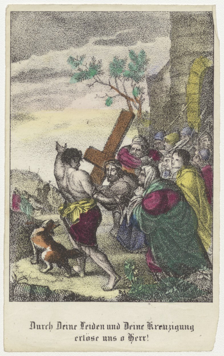 Christus valt onder het kruis met Maria (Duits), ingekleurd