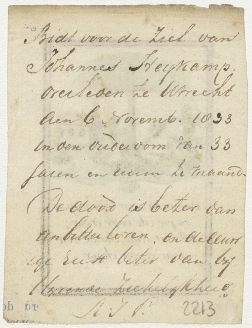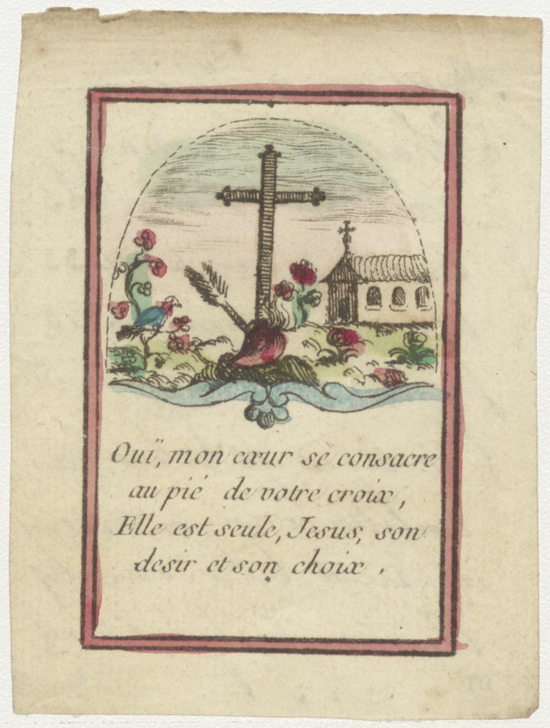 Kruis op graf met tekst (Frans), ingekleurd, kz. bid voor ziel Heykamp (+1833) Utrecht