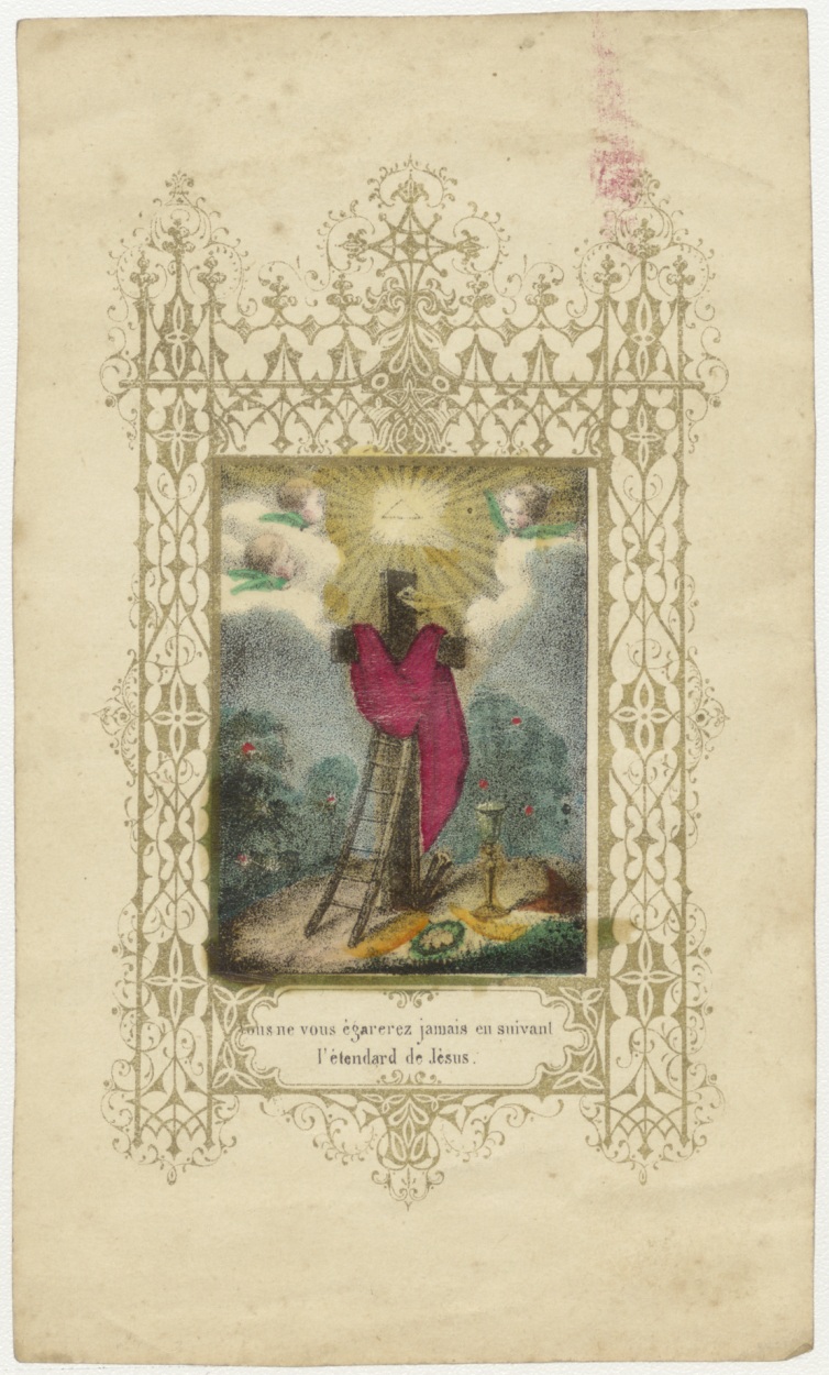 Kruis met rouwdoek (Frans), ingekleurd, kz. gebed (Frans)