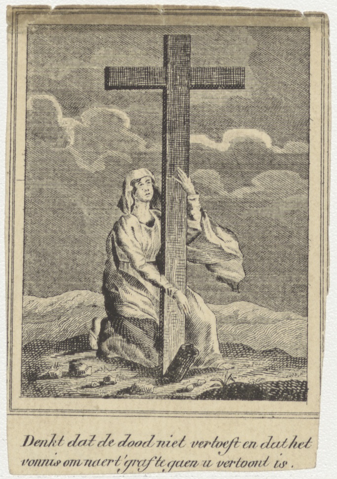Vrouw met kruis, denkt dat de dood...