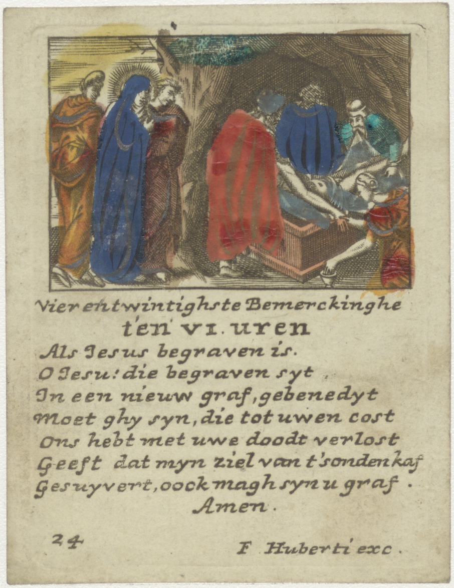Passieserie (20); graflegging van Christus wordt met gebed, ingekleurd