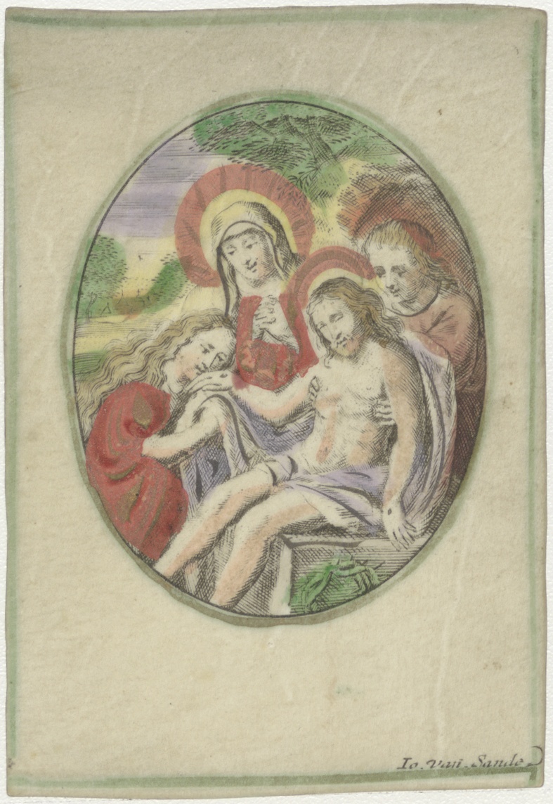 Maria, Maria Magdalena en Johannes met lichaam van Christus