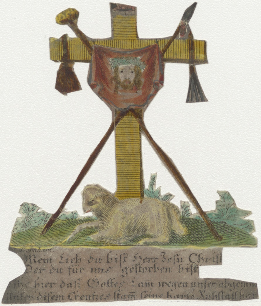 Christus, Verinicadoek aan kruis, met lam (Duits), ingekleurd