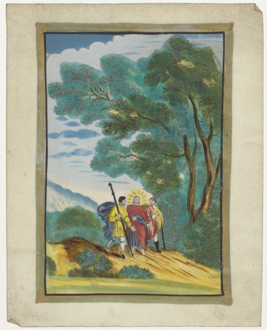 Christus met de Emmausgangers, ingekleurd