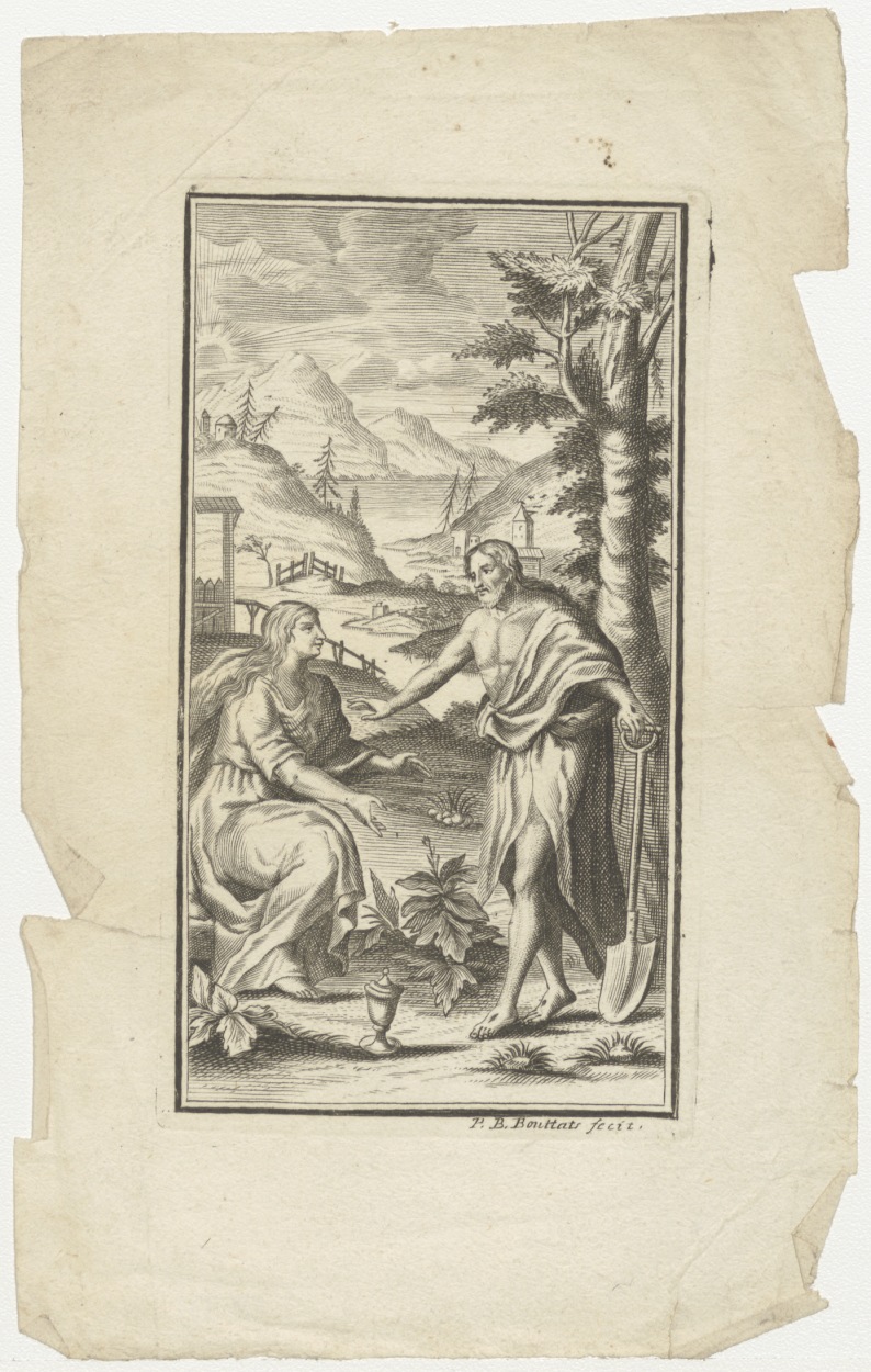 Christus, met schop en vrouw in landschap