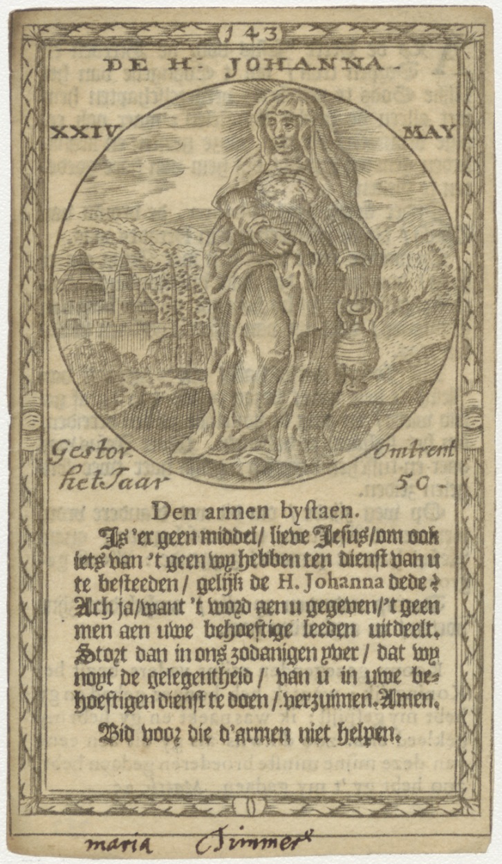 H. Johanna (Joanna) met gebed en naamfeestdag (24 mei), kz. gebed;Timmer;