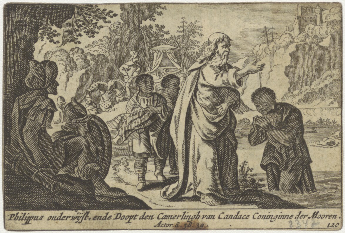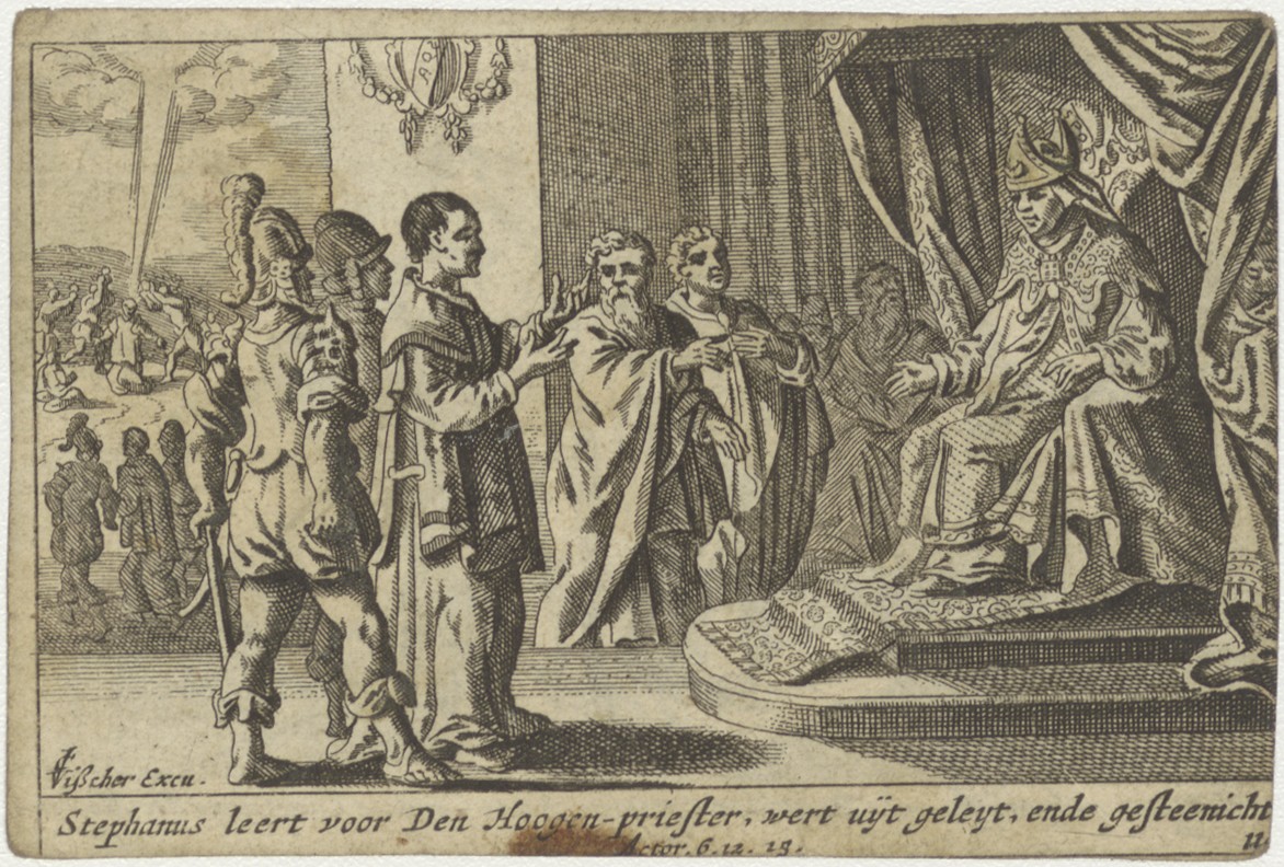 Stephanus leert voor den hoogenpriester, kz. Philippus onderwijst, en de doop van de kamerling (hand.8:38)